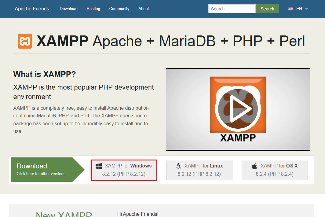 (예: Windows용 XAMPP → “XAMPP for Windows”)