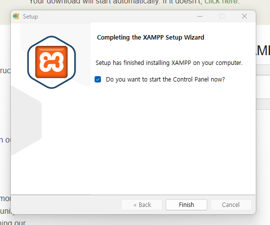 • 완료되면 XAMPP 컨트롤 패널이 자동으로 실행됩니다.