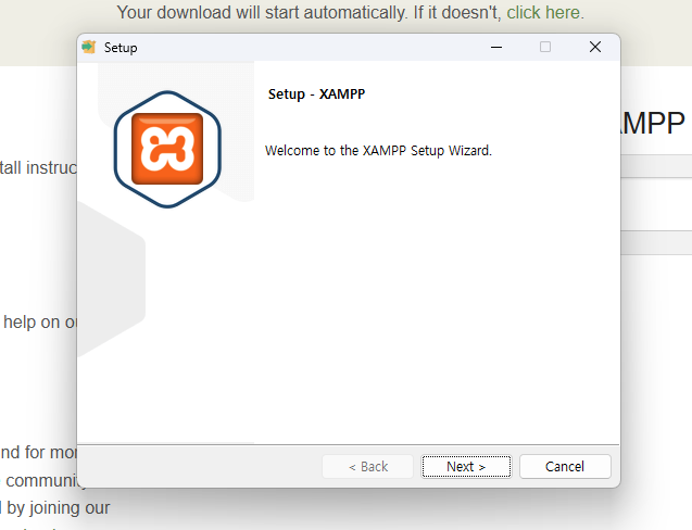 → 그대로 두고 Next를 클릭해도 무방합니다. - 설치 경로는 기본값(C:\xampp)을 유지하는 것이 좋습니다.