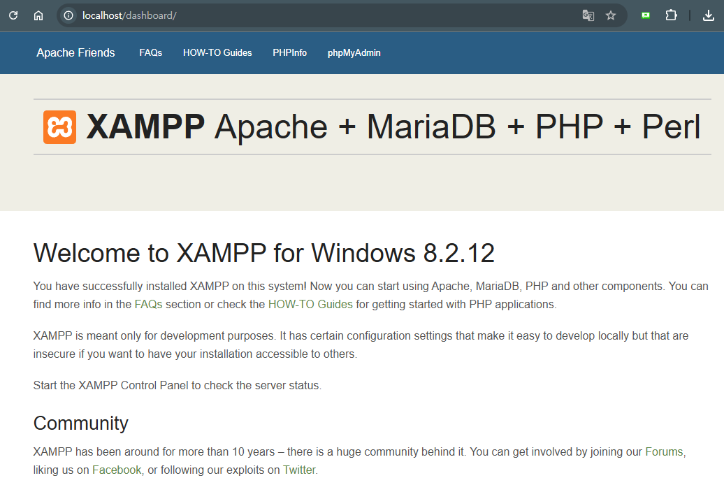 - XAMPP 웰컴 페이지가 보이면 설치 성공!