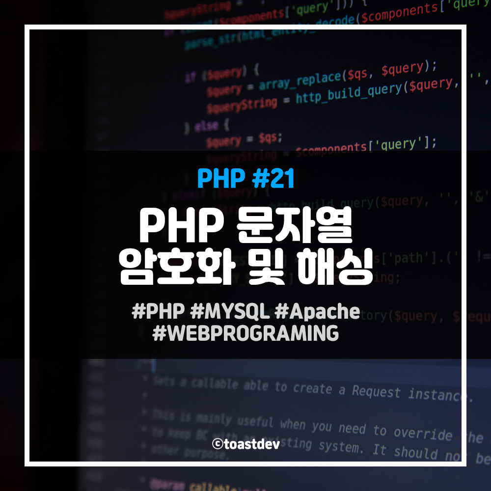 #PHP문자열 #문자열암호화 #해시함수 #password_hash #md5 #sha1 #hash #openssl_encrypt #PHP보안 #코딩입문 #웹보안 #toastdev